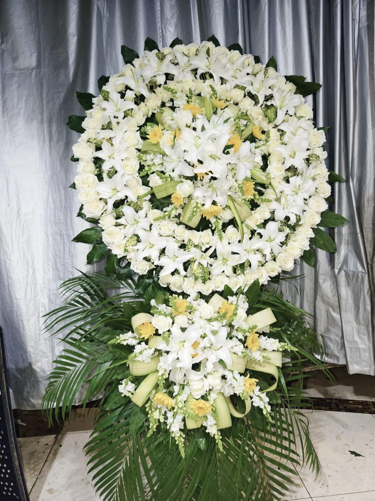 礼佳礼仪提供全面且专业的殡葬一条龙服务,涵盖了逝者离世到后事处理的各环节,报接遗体,上门设灵堂,更衣,墓地落葬,服务电话4008213844,贴心助家属送别顺利亲人。下文重点介绍丧事花圈,如下图